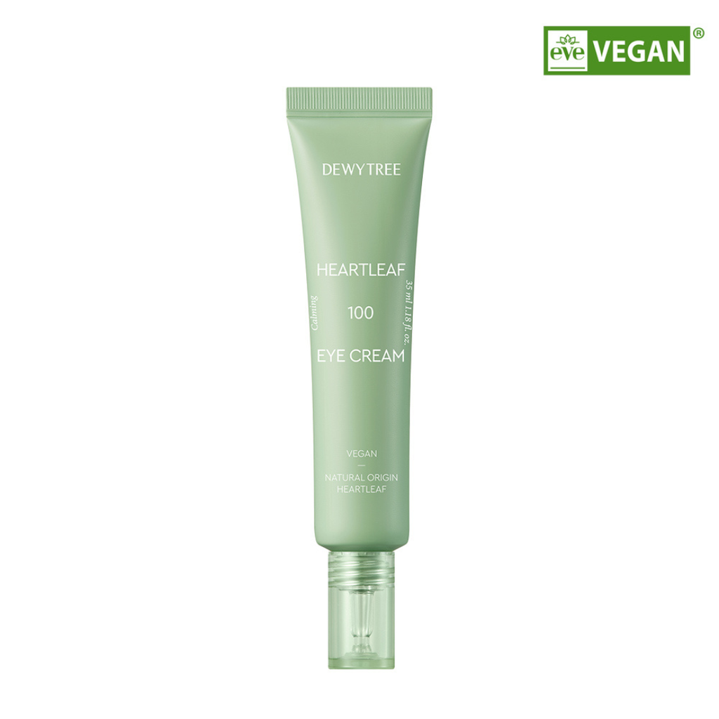 Crema de contorno de ojos vegana formulada con extracto de Heartleaf, cultivado en la isla de Jeju, y Centella Asiática que reduce la apariencia de las bolsas debajo de los ojos y proporciona un efecto lifting.